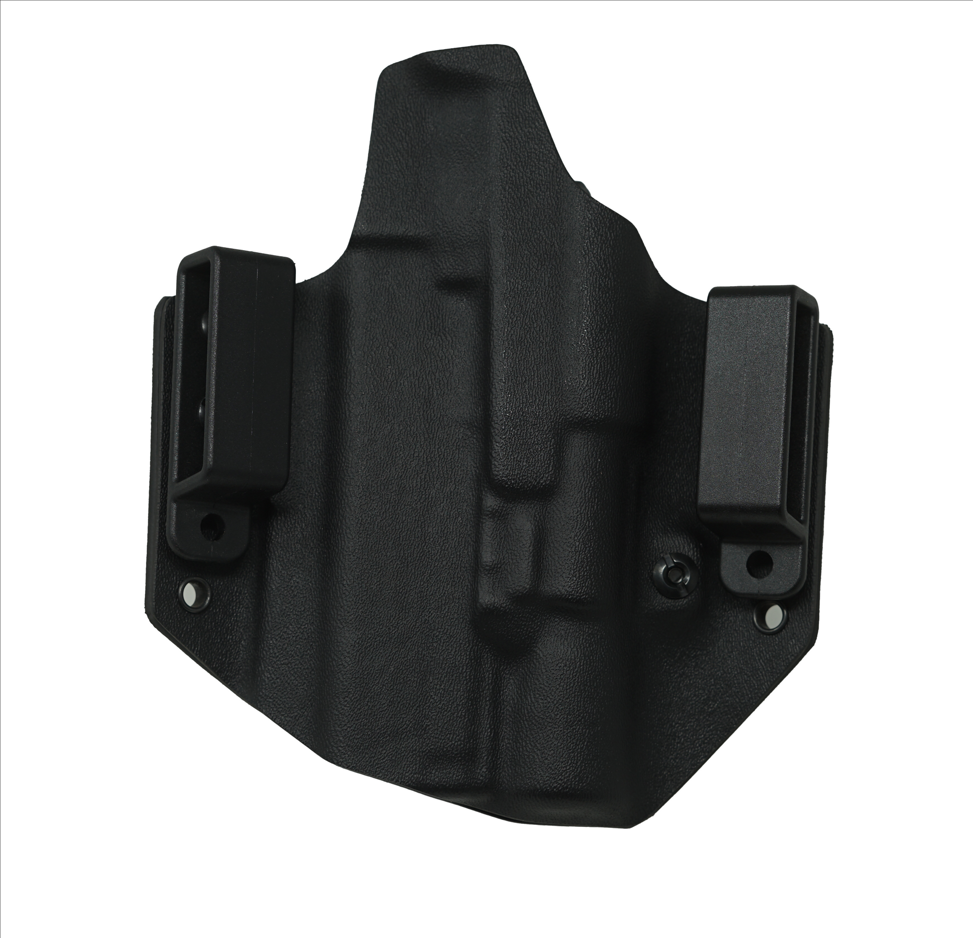 The return of a classic. The 'Pancake' OWB is a traditional design two piece holster with built in curve to remain extremely close to the waist line. The 'Pancake' holster is perfect for outside the waistband concealment under a jacket or hoodie.