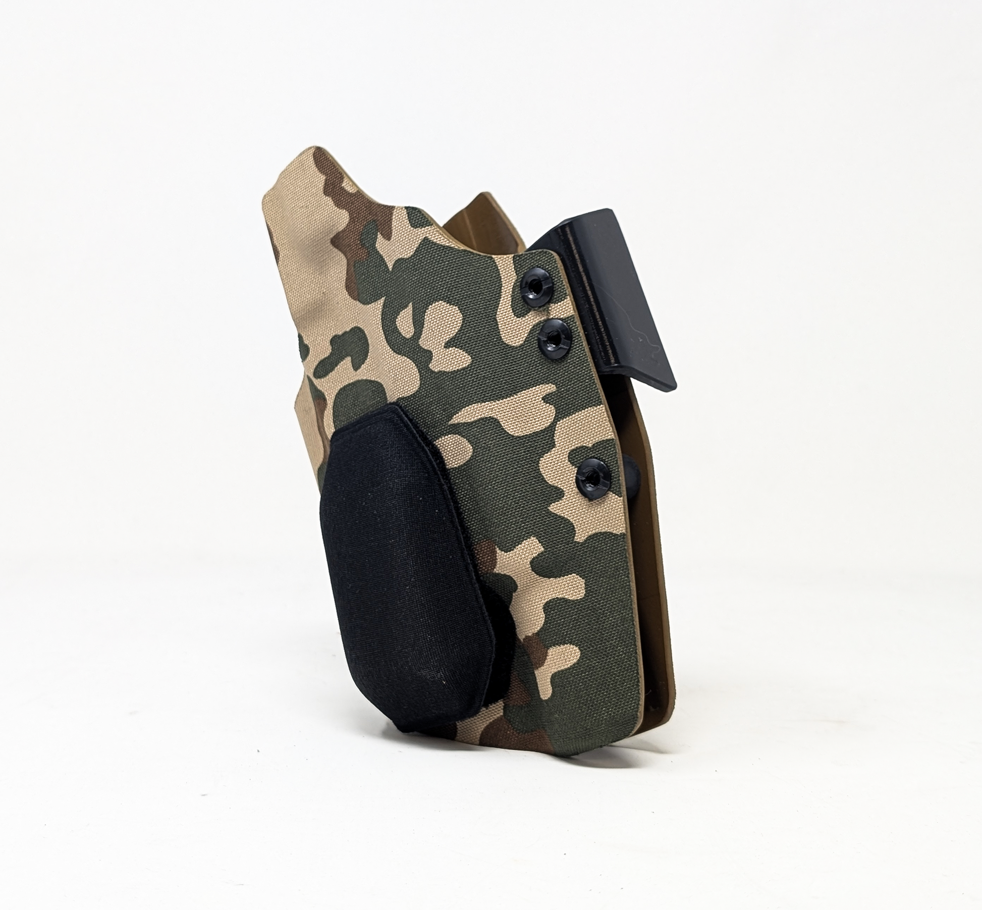 - Enhanced Concealment – Angled design pushes the holster inward to reduce printing